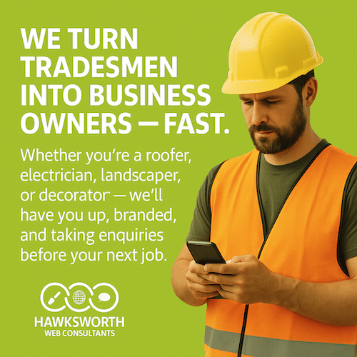 Sub-headline: Whether you’re a roofer, electrician, landscaper, or decorator — we’ll have you up, branded, and taking enquiries before your next job.